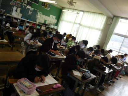 1/12(木) 5年生 公開日 2022/01/13 更新日 2022/01/13 5年生 算数です。「円と正多角形」の学習です。正六角形と正八角形をコンパス、分度器、定規を駆使して描いています。辺の長さと内角の大きさがすべて等しいという正多角形の特徴を理解して描かなければなりません。みんな集中してがんばっています。