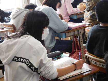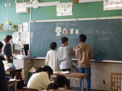 算数です。「場合を順序よく整理して」の単元の学習です。「樹形図」を使って場合の数がどれだけあるか順序よく調べる方法を学んでいます。