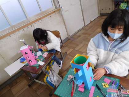 1/19(水) 2年生 公開日 2022/01/19 更新日 2022/01/19 2年生 図工です。「まどからこんにちは」の製作です。窓を開けたら何が出てくるか、それぞれ考え、個性あふれる作品ができあがってきます。子どもたちの創造力はすごいですね。