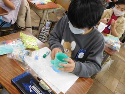 1/19(水) 3年生 公開日 2022/01/19 更新日 2022/01/19 3年生 図工です。「あきようきの へんしん」の製作をしています。コップに紙粘土を付けて、空の容器をステキな容器に変身させていきます。こちらも個性があふれています。