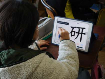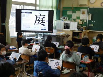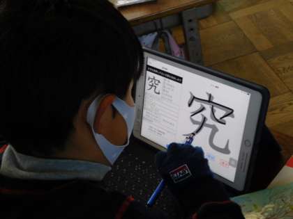 1/20(木) 3年生 公開日 2022/01/20 更新日 2022/01/20 3年生 国語です。新出漢字の練習です。タブレット端末に直接書き込む形で練習しています。筆順の間違いもチェックしてくれます。ノートへの練習とハイブリッドで定着を図っています。