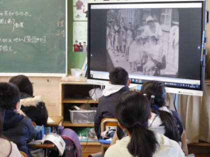 1/20(木) 6年生 公開日 2022/01/20 更新日 2022/01/20 6年生 社会です。第2次世界大戦中の人々の暮らしを調べています。戦時中の様子をまとめた映像を真剣なまなざしで視聴しています。平和な世界に感謝です。