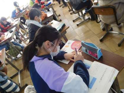 国語です。「ウナギのなぞを追って」の学習です。段落ごとに何について書かれているか、要点をまとめています。読解力を鍛えています。