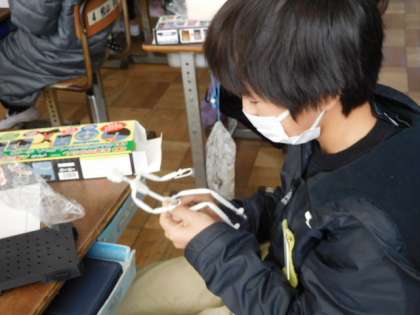 1/21(金) 6年生 公開日 2022/01/21 更新日 2022/01/21 6年生 図工です。「未来のわたし」の製作です。自分の分身を作って、未来の自分を表現します。今日は人体心材を使って、骨組みを作ってポーズを決めます。