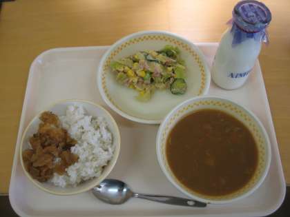 1/21(金) 給食 公開日 2022/01/21 更新日 2022/01/21 給食 今日の献立は むぎごはん・ぎゅうにゅう カレーライス ツナサラダ (たくじょうごまドレッシング) ふくじんづけ です。