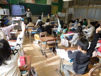 1/24(月) 2年生 公開日 2022/01/24 更新日 2022/01/24 2年生 音楽です。「森のたんけんたい」の学習です。「♩:タン、♪:タ、♫:タタ」などリズムの読み方を習って、リズムの取り方を練習しています。