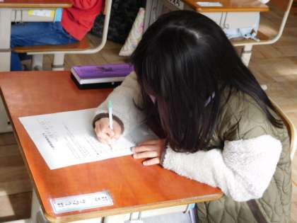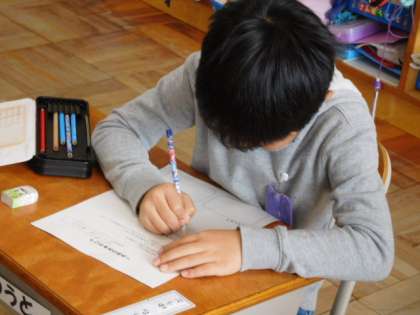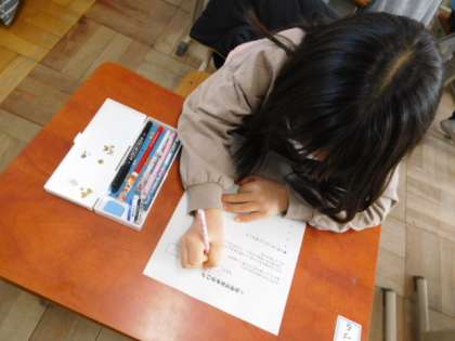 生活科です。来年度入学してくる新1年生のために、学校生活の楽しいことを教えてあげる手紙を書いています。手紙を書くことで、同時に、1年間の自分自身の振り返りをしています。