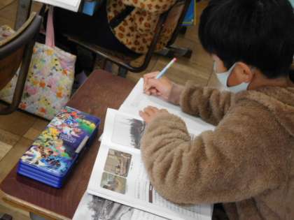 1/25(火) 3年生 公開日 2022/01/25 更新日 2022/01/25 3年生 社会です。先日校外学習で訪問した「知多市歴史民俗博物館」の見学のまとめをしています。資料から分かったことを伝え合ったり、知多市の歴史について考えています。