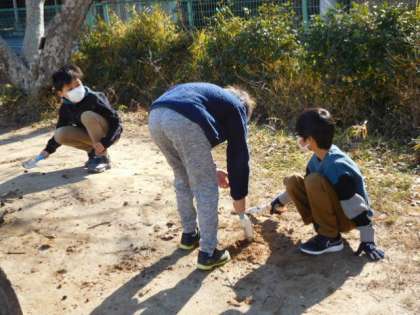 1/26(水) 4年生 公開日 2022/01/26 更新日 2022/01/26 4年生 理科です。冬の生き物探しをしています。他の季節に比べ、生き物の姿を見ることが少ないですが、いろいろな場所でしっかり命が生きているのを感じることも大事な学習です。
