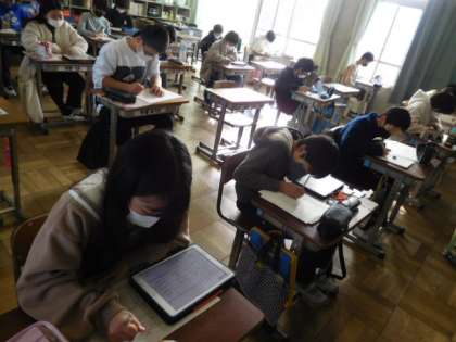 外国語です。「Welcome to Japan」の単元の学習です。外国人が来たらどのように日本の文化や式を紹介するかの練習です。日本の行事の英語での表し方を調べています。花見やひな祭りは英語でどう表現するのでしょう?