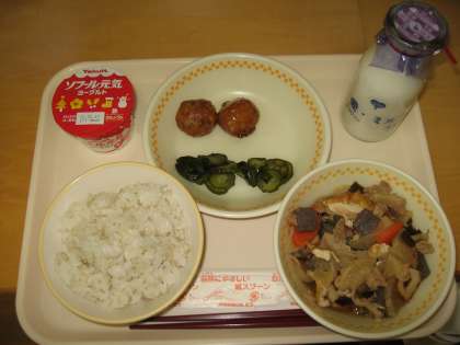 1/31(月) 給食 公開日 2022/01/31 更新日 2022/01/31 給食 今日の献立は むぎごはん・ぎゅうにゅう ごぼういりつくね 2こ ぶたにくとだいこんのにもの きゅうりのあまずあえ ヨーグルト です。