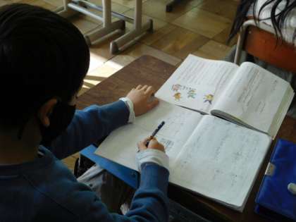 2/1(火) 2年生 公開日 2022/02/01 更新日 2022/02/01 2年生 国語です。「おにごっこ」という教材を通して説明文の学習をしています。「はじめ、なか、おわり」という文章の構造を学び、どのようなことが説明されているか読み取っていきます。