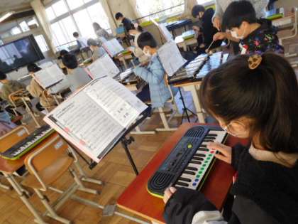2/2(水) 4年生 公開日 2022/02/02 更新日 2022/02/02 4年生 音楽です。「ラ クンパルシータ」の練習の続きです。練習を重ねるごとに演奏も上達しています。思い通りに演奏できるようになってみんな楽しそうです。