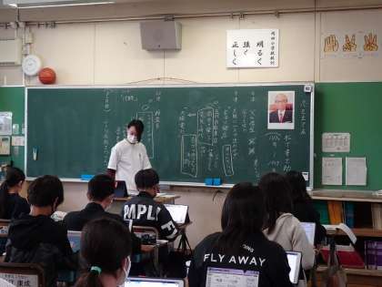 5/9(月) 6年生 公開日 2022/05/09 更新日 2022/05/09 6年生 道徳です。安定した会社を辞めてまで、自分の会社を始めようと思った松下幸之助さんの思いを話し合いました。ロイロノートに自分の考えを入力した後、友達と考えたことを共有して、話し合いを深めました。