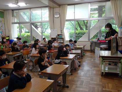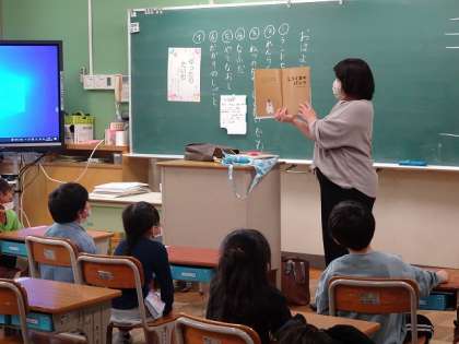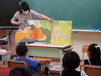 5/12(木) 1年生 公開日 2022/05/12 更新日 2022/05/12 1年生 ととろの部屋のボランティアの方に来ていただき、読み聞かせをしていただきました。大きな本が登場したり、子どもたちが知っているお話をしてくださったりして、みんな興味津々でした。