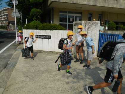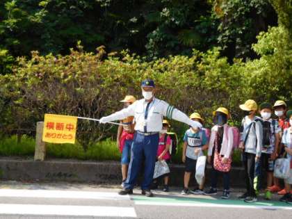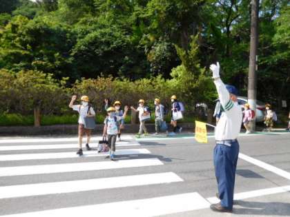 今日は交通指導員さんが登校を迎えてくださいました。日に日に暑さが増していきますが、子どもたちの元気な「おはようございます」が飛び交います。