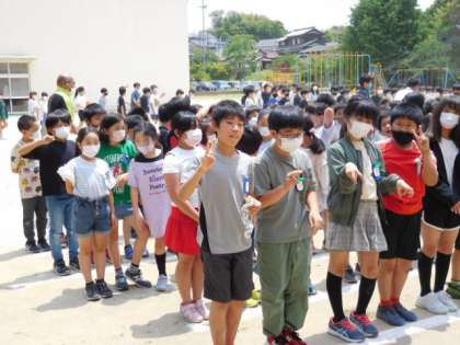 5/25(水) 航空写真 公開日 2022/05/25 更新日 2022/05/25 全校 そのあとは、高学年の集合写真です。グランドから運動場に移動して整列します。さすが高学年整列が速いですね。気をつけの姿勢とピースのポーズでカシャ!本日撮影した航空写真は注文販売をさせていただきます。詳細は後日お伝えします。