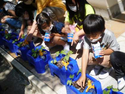 5/30(月) 1年生 公開日 2022/05/30 更新日 2022/05/30 1年生 生活科です。アサガオの芽が出ました。水やりをして、どんなふうに育っていくか観察をします。生き物の世話をしながら、いのちの大切さについても学んでいきます。