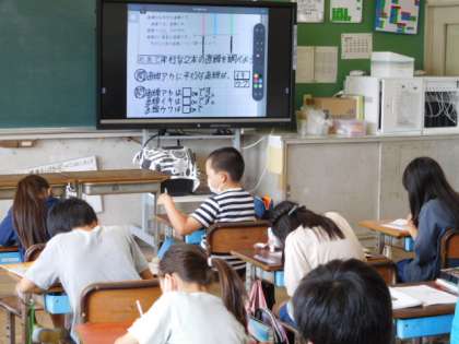 5/30(月) 4年生 公開日 2022/05/30 更新日 2022/05/30 4年生 算数です。「垂直・平行と四角形」の学習です。平行な2つの直線の線と線の間の長さを測っています。その結果から平行な2つの直線の特徴を考えます。