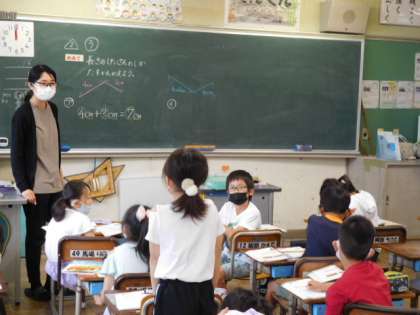 6/1(水) 2年生 公開日 2022/06/01 更新日 2022/06/01 4年生 算数です。「長さ」の学習です。長さの研鑽の練習です。4cm+3cmのような計算の仕方を考えています。単位はついていても、計算の仕方は1年生で習っていますね。