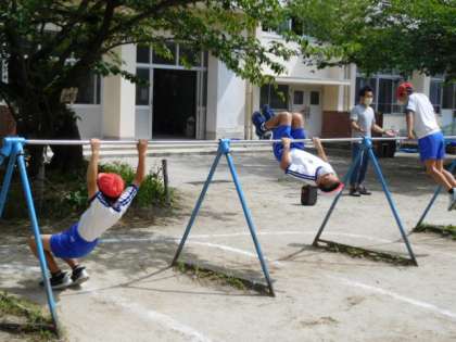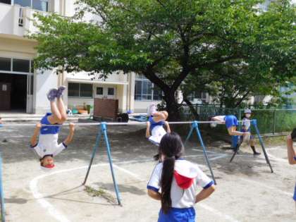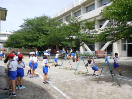 6/1(水) 3年生 公開日 2022/06/01 更新日 2022/06/01 3年生 体育です。「鉄棒運動」の練習です。安全に練習を行うための注意事項を確認して後、まずは、逆上がりの練習が始まりました。