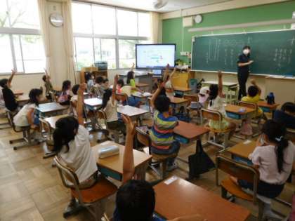 6/3(金) 1年生 公開日 2022/06/03 更新日 2022/06/03 1年生 国語です。ひらがなの練習です。今日は「す」の練習です。電子黒板に間違って書かれた字のどこを直したらいいか考えて、正しい書き方を身に付けています。