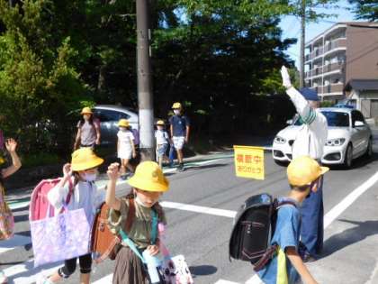 6/8(水) 登校 公開日 2022/06/08 更新日 2022/06/08 全校 今日は交通指導員さんが立哨してくださる日です。生活委員、有志の子どもたちといっしょに、登校する通学班を迎えていただきました。