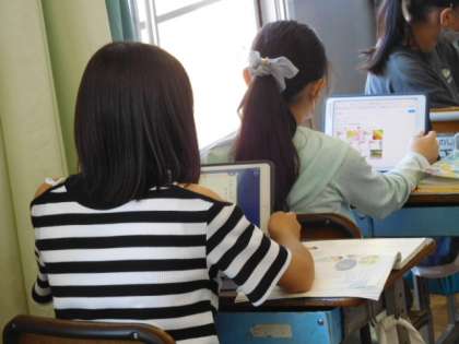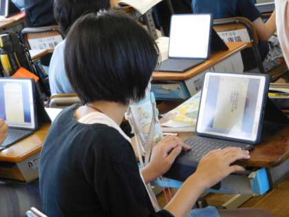 6/8(水) 6年生 公開日 2022/06/08 更新日 2022/06/08 6年生 国語です。「言葉を選んで,短歌を作ろう(たのしみは)」の学習です。「たのしみは」で始まる短歌を作り、自分が楽しいと思えることを紹介し合います。タブレット端末で情報を共有し、リアルタイムで状況を伝え合っています。
