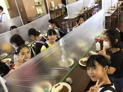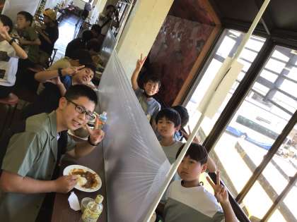 見学を終え、昼食です。たくさん歩いた後のカツカレーの味は格別ですね。