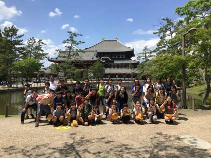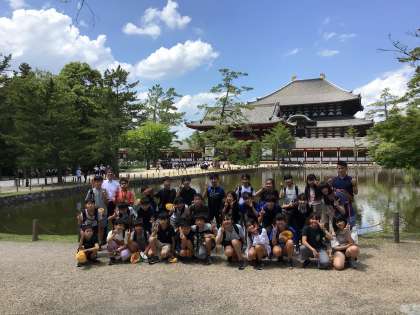 予定より30分早く東大寺に到着、まずは記念撮影です。