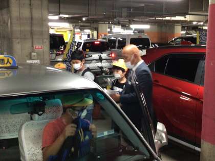 京都駅無事到着、それぞれのタクシードライバーさんと顔合わせして、見学先に出発しました。