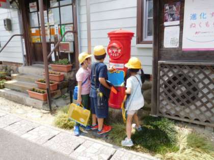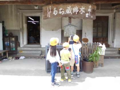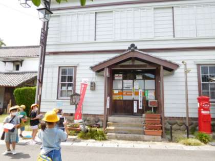 2年生が校外学習に出かけました。グループごとに木綿蔵、岡田郵便局など、岡田の街並を見学しています。