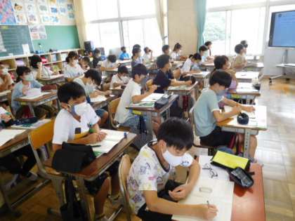 6/22(火) 6年生 公開日 2022/06/22 更新日 2022/06/22 6年生 算数です。「分数」の学習です。「ビンにジュースが600mlはいっています。これは、びん全体の容積の2/3にあたります。びん全体では、何mlはいりますか」のような問題を解いています。さて、何算を使うとよいのでしょうか?