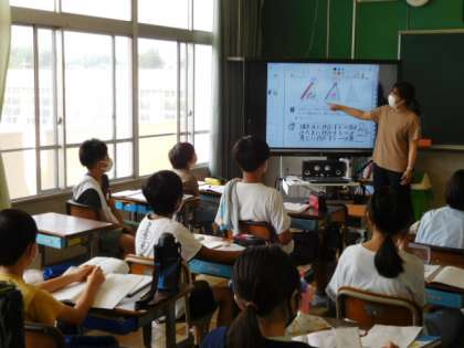 6/23(木) 5年生 公開日 2022/06/23 更新日 2022/06/23 5年生 算数です。「合同な図形」の学習です。角や辺の位置関係を確認して図形を見比べます。角や辺の名称をしっかり確認しています。