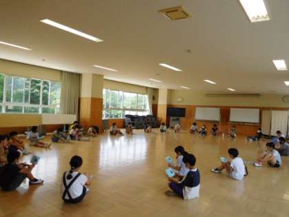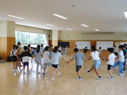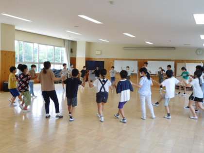 総合的な学習です。5年生は来週に迫った林間学校に向けて最後の追い込みです。キャンプファイヤーで行うフォークダンスの練習をしています。もうすっかり動きは身についていますね。
