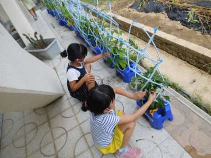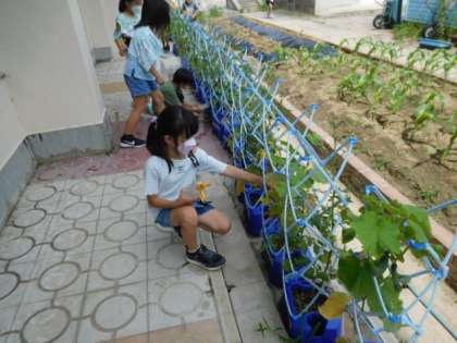 6/24(金) 2年生 公開日 2022/06/24 更新日 2022/06/24 2年生 総合的な学習です。育てた野菜に水やりをしたり、収穫をしたりして、育っていく様子を観察しています。自分が育てた野菜が大きくなって、本当にうれしそうです。