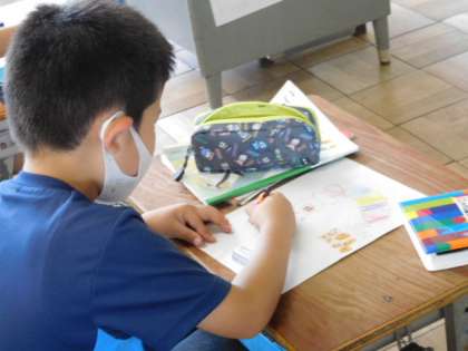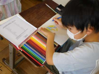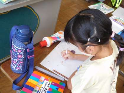 国語です。「あったらいいな、こんなもの」の学習です。単元のめあては「しつもんをしあって,くわしく考えよう」です。まずは、あったらいいなと思うものをカードに描いています。