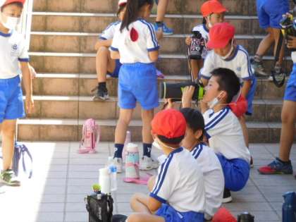 6/28(火) 3年生 公開日 2022/06/28 更新日 2022/06/28 3年生 体育です。「鉄棒」の練習です。運動する時間を確保しつつも、給水時間を多めに取り、ミストシャワーで体を冷やすなど、熱中症対策を行いながら進めています。