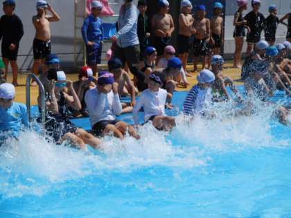 6/28(火) 4年生 公開日 2022/06/29 更新日 2022/06/29 4年生 4年生が午後から水泳の授業をおこないました。あちらこちらから「気持ちいい〜」という声が聞こえてきます。水を得た魚のように泳いでいます。