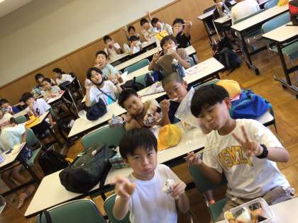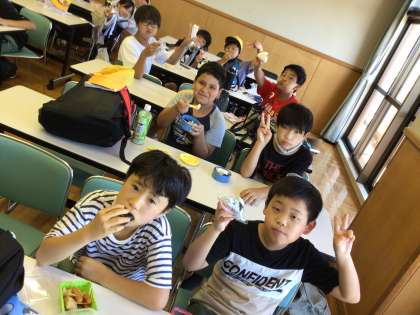 林間学校でみんなと食べるお弁当は格別ですね。エネルギーを補給して、みんな元気を取り戻しました。