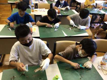 クラフト体験が始まりました。正解に一つだけのメタルスプーンを作ります。