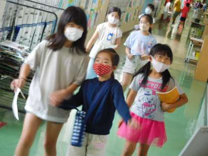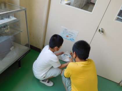 7/6(水) 児童会企画 公開日 2022/07/06 更新日 2022/07/06 児童会・委員会 児童会企画「ペアで協力わくわくクイズラリー」の第2弾、今日は2年生、4年生のペアです。ペアで協力してクイズに挑戦する姿が微笑ましいですね。