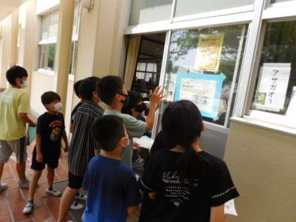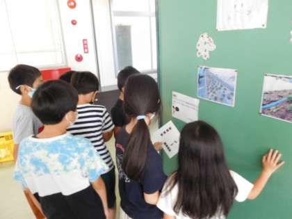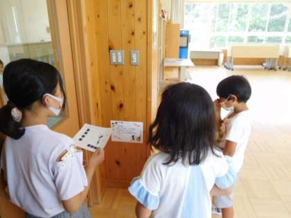 7/7(木) 児童会企画 公開日 2022/07/07 更新日 2022/07/07 児童会・委員会 児童会企画「ペアで協力わくわくクイズラリー」第3弾です。今日は、3年生と5年生のペアです。一緒にクイズの解答を考えながら、ペアの仲も深まっていきます。