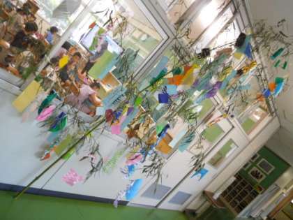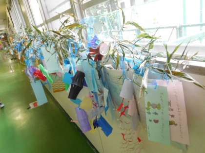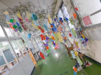 7/7(木) 1年生 公開日 2022/07/07 更新日 2022/07/07 1年生 今日は七夕、1年生が、願い事を書いた短冊に思いを込めて、七夕飾りを作りました。今夜は天の川が見えるといいですね。