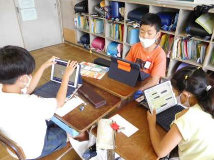 7/11(火) 5年生 公開日 2022/07/12 更新日 2022/07/12 5年生 外国語活動です。「What do you want to study?」の学習です。自分が将来何になりたくて、そのためにどんな勉強をしたいかを英語にまとめて発表し合っています。
