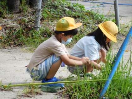 生活科です。秋になるとトンボやバッタをよく見かけるようになりますね。今日は虫取りをして秋に浸ります。