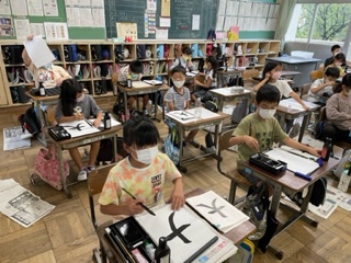 9/9(金) 3年生 公開日 2022/09/09 更新日 2022/09/09 3年生 書写です。「大」の練習です。基本の「左はらい」「右はらい」の練習でもあります。しっかり書き方を身につければ、これからに生かせます。しっかり練習してくださいね。