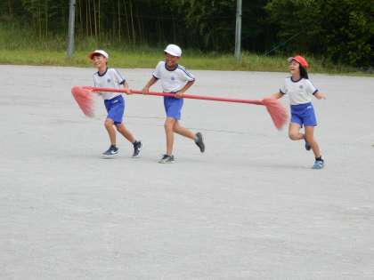 9/13(火) 3・4年生 公開日 2022/09/13 更新日 2022/09/13 全校 体育です。3・4年生が合同でオカリンピックの競技種目の練習をしています。まずはっ競技方法やルールの確認をして、競技の流れをつかむ練習です。