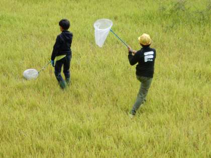 9/13(火) 3年生 公開日 2022/09/13 更新日 2022/09/13 3年生 理科です。「こん虫の世界」の学習です。旧大同高校の校舎前の原っぱで昆虫探しです。探した昆虫を観察して、昆虫の秘密に迫ります。