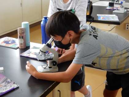 9/16(金) 6年生 公開日 2022/09/16 更新日 2022/09/16 6年生 理科です。「生き物と食べ物・空気・水」の学習です。水中でくらす小さな生き物を、顕微鏡を使って観察しています。ミジンコ、アオミドロ、ボルボックスなどなどです。
